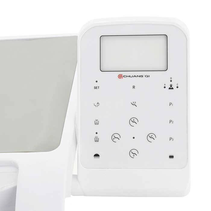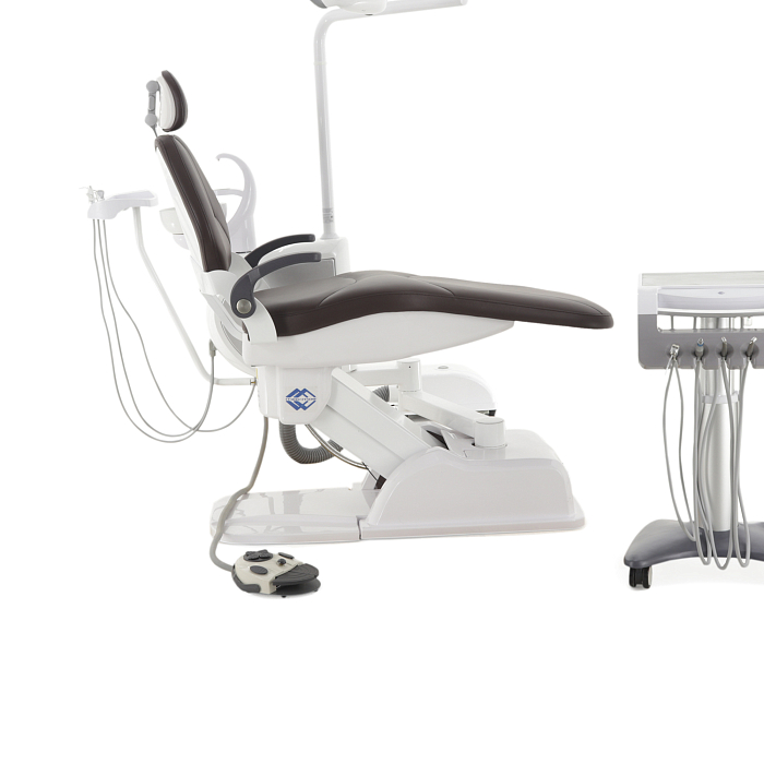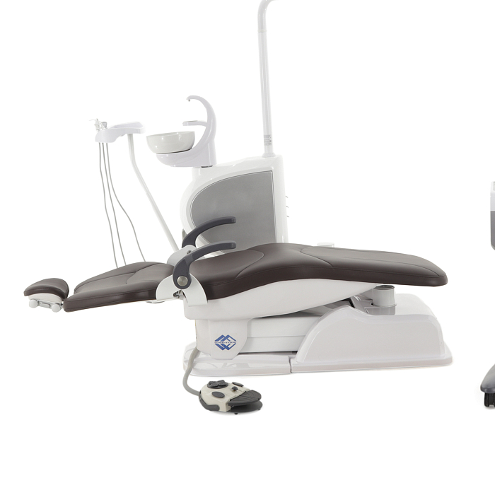 Кресло пациента с правым откидным подлокотником, двумя взаимозависимыми двигателями регулировки положения.