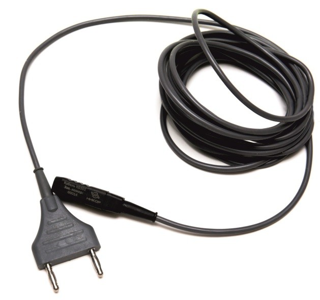 Подключение пинцета - плоский двухполюсный коннектор европейского стандарта. Диаметр штыря соединения к аппарату - 4 мм. Длина кабеля 4,5 м.