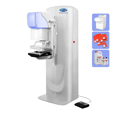 - автоматическое определение самой плотной области молочной железы и выбор оптимальных параметров экспозиции;