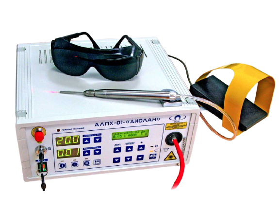 - Аппарат оснащается универсальным световодным инструментом и сменными оптоволоконными наконечниками.
