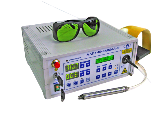 Аппарат оснащен разработанным в НПП ВОЛО универсальным флебологическим световодным инструментом с насадками кругового облучения для ЭВЛК и фокусирующими насадками для ЧЛС