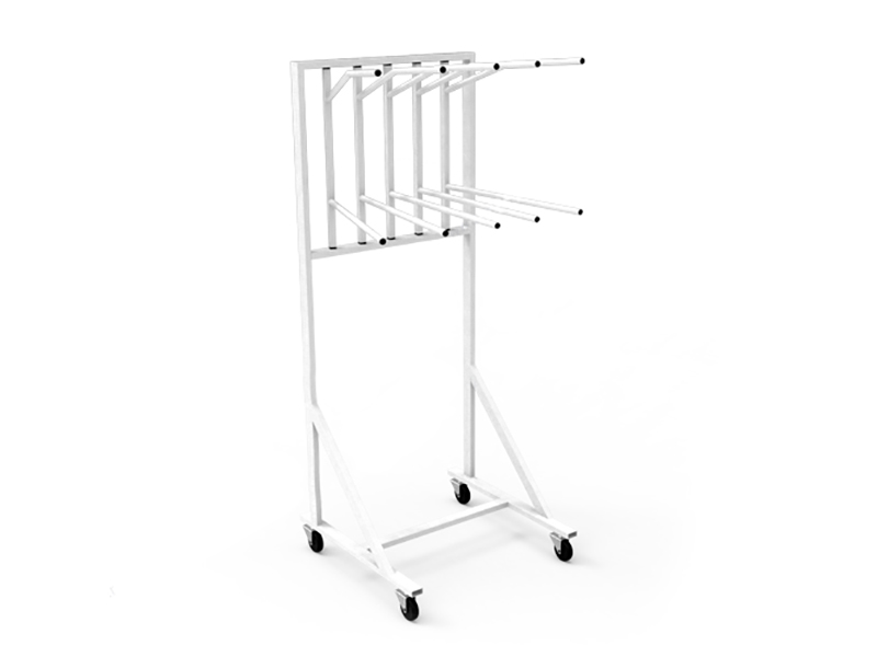 - Мобильные вешалки оснащены колесиками, что позволяет без особых усилий перемещать ее по всему пространству помещения.