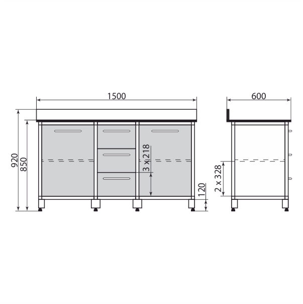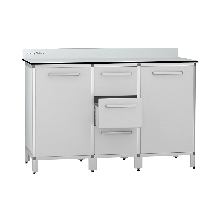 - Столешница: из пластика HPL толщиной 16 мм. Материал устойчив к растворам и химикатам, не подвержен коррозии и окислению, выдерживает температуру до 1800С