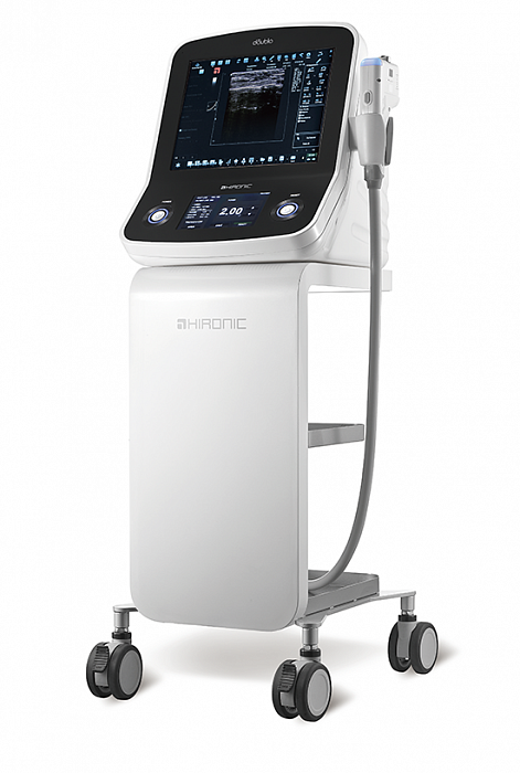 - Датчик изображения в манипуле и преобразователь HIFU в датчике разделены, поэтому технология даёт возможность проводить УЗИ диагностику кожи без датчика до 15 мм в глубину