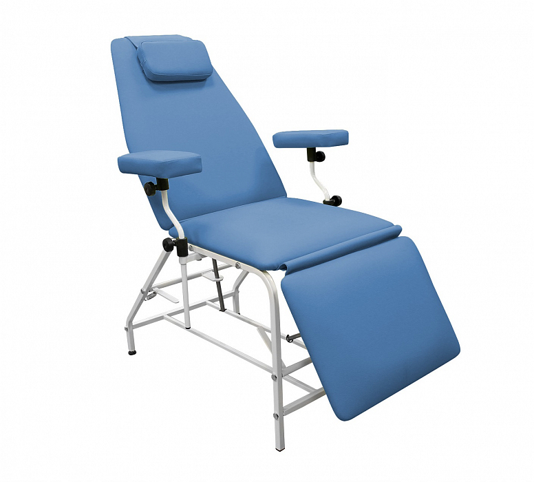 - Донорское кресло имеет механическую регулировку угла наклона секции спины и ножной секции.