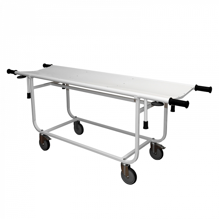 Тележка состоит из подвижного основания и съёмных носилок.