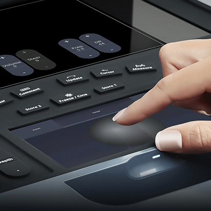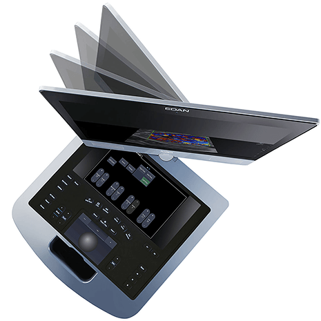 Еще одна примечательная особенность портативного УЗИ-аппарата Acclarix AX8 EDAN – подвижный регулируемый монитор, у которого можно менять наклон и поворот. Панель управления можно настраивать индивидуально. Помимо основного монитора также предусмотрены дополнительные сенсорные экраны.