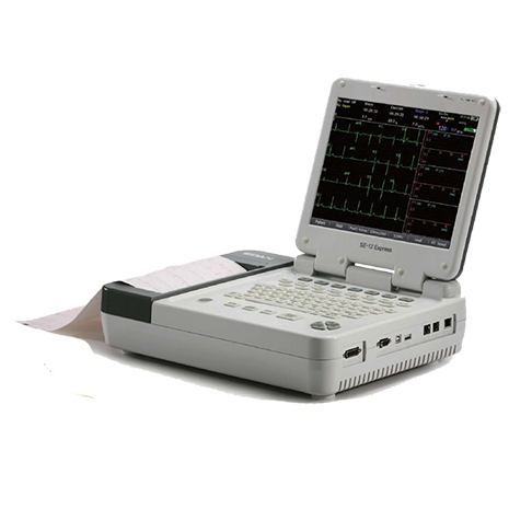 SE-12 Express представляет собой современное 12-канальное стационарное устройство, с помощью которого пользователь может с легкостью осуществлять регистрацию по 12 отведениям. Данная модель имеет другой вариант модификации SE-12 (данный кардиограф применяется для снятия стандартного ЭКГ в состоянии покоя). Модель SE-12 Express может быть использована для диагностики состояния сердечно-сосудистой системы при нагрузке. Предполагает возможность использования сканера штрих-кодов для упрощения ввода данных пациентов.