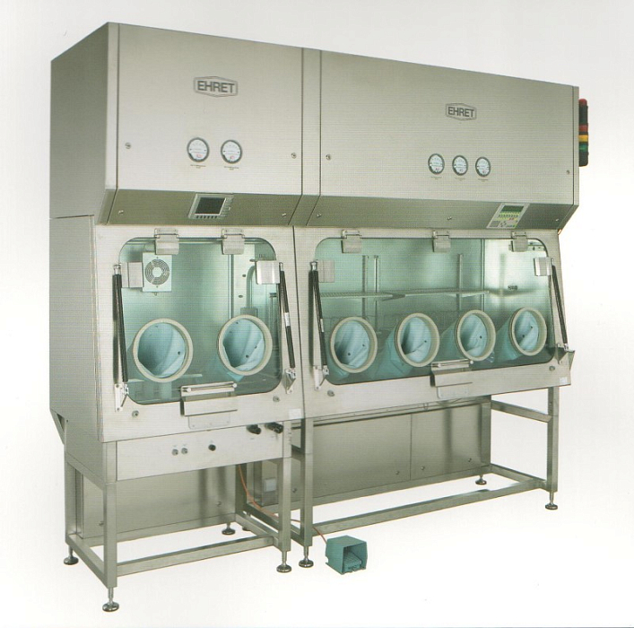 Фармацевтические изоляторы класса А с 2/4 перчаточными портами с ламинарным / турбулентным потоком в рабочей зоне выпускаются в 2-х модификациях – с пониженным либо повышенным давлением в рабочей зоне. Изоляторы могут подвергаться стерилизации парами перекиси водорода и имеют модульную конструкцию. Данное оборудование обеспечивает высокий уровень безопасности рабочего процесса и персонала.