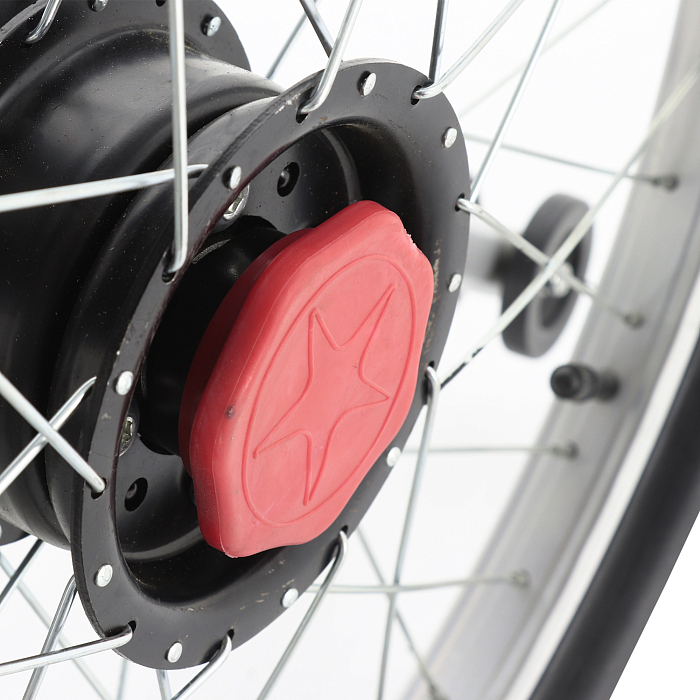 - Передние колеса: 24,6 см, из литого ПВХ с продольными канавками.
