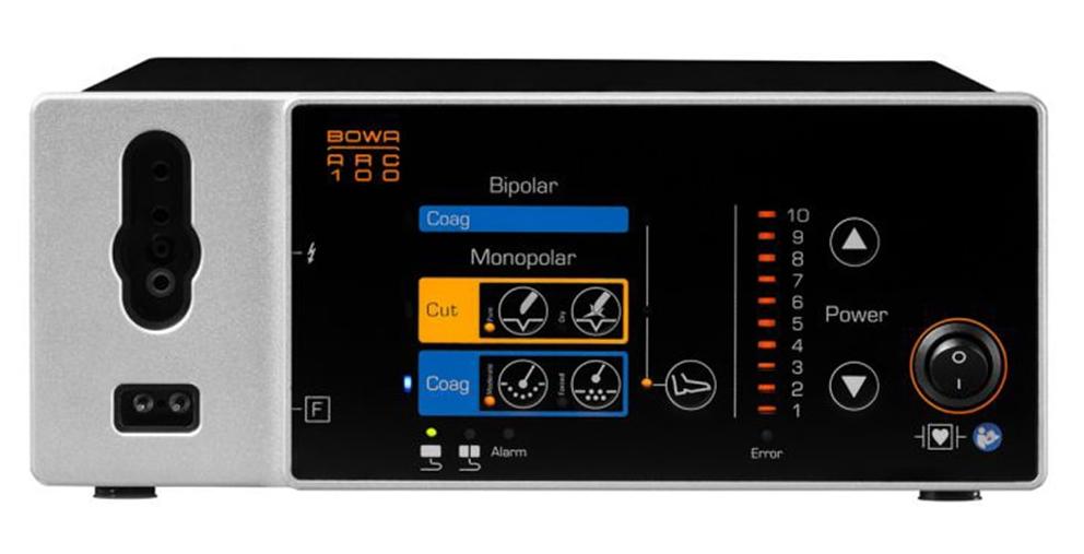 ARC 100 с максимальной выходной мощностью в 100 ватт и оснащен пятью режимами: два режима для монополярного сечения, два режима для монополярной коагуляции, а также режим биполярной коагуляции.