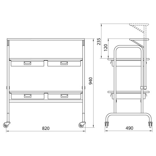 Столик инструментальный манипуляционный Электра 2 полки,4 ящика + доп. телескопическая полка СИя4 3-01 (2М-4дп)