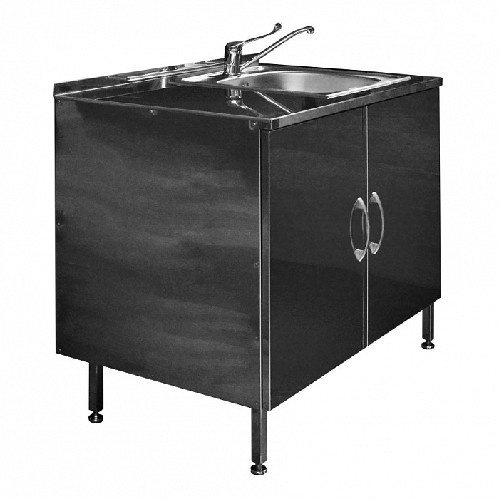 Данная модель имеет столешницу и оснащена дверцей. Врезная мойка выполнена из нержавеющей стали.