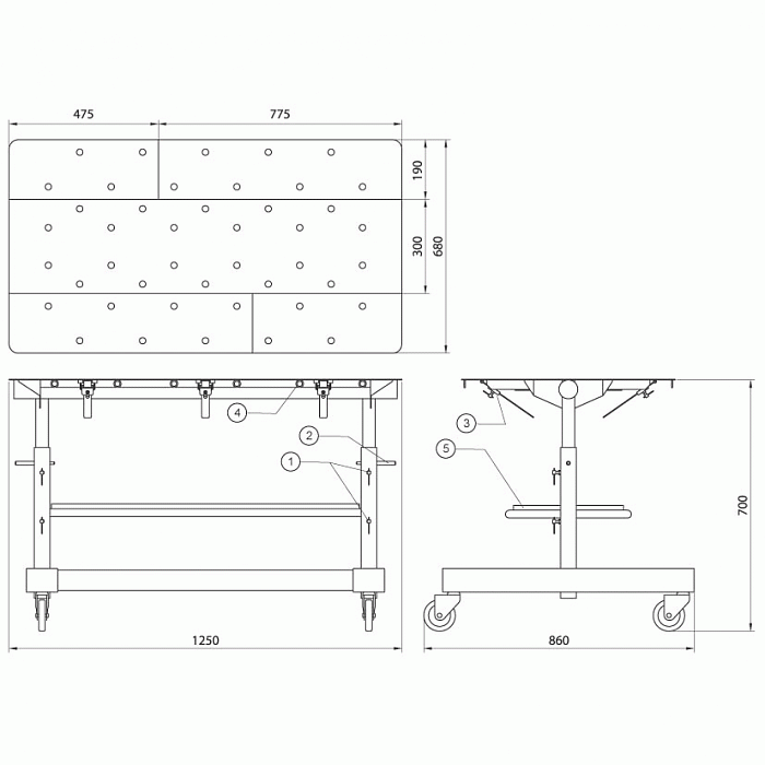 Высота стола регулируется в пределах от 700 до 1100 мм с шагом 50 мм. Выдерживает до 150 кГ распределенной нагрузки. Вес стола 70 кГ.