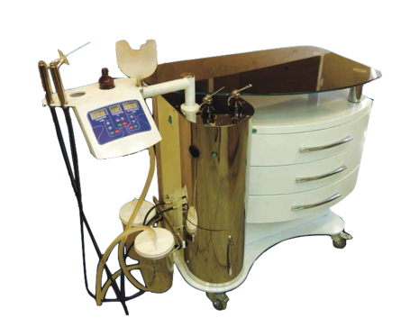 • поворотный кронштейн с кнопочной панелью и знакосинтезирующими LED- индикаторами на три канала: вакуум, давление, температура промывающей жидкости; - держатель налобного рефлектора (на поворотном кронштейне);