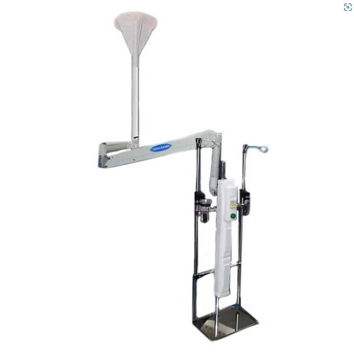 Консоль вращается относительно вертикальной стойки, закрепленной на потолке; модуль консоли вращается вокруг своей вертикальной оси и может опускаться или подниматься по высоте. Подъем или опускание осуществляется с помощью мускульной силы.
