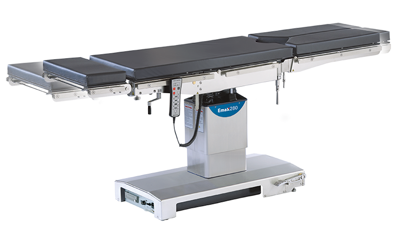 Emax280 двустороннее продольное электрическое скольжение до 30 см (22 см в направлении головы и 8 см в направлении ноги) обеспечивает гибкое позиционирование пациента для доступа с помощью С-дуги. (модели Advantage и Elegance)
