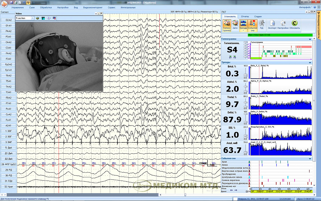 Обеспечивается высокая степень синхронизации видеоданных с физиологическими и нейрофизиологическими данными при проведении ЭЭГ/ПСГ-исследований и мониторинга церебральных функций.
