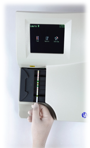 - Проведение анализа с помощью анализаторов LAURA исключает субъективную оценку цветной реакции на peaгентных зонах диагностических полосок и позволяет увеличить достоверность интерпретации результатов.