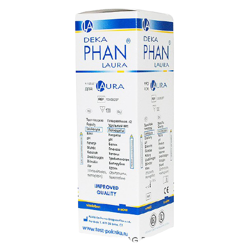 - Диагностические тест - полоски PHAN Laura предназначены для исследования с помощью анализаторов мочи Laura Smart, Laura, Laura M, Laura XL Comfort. В зависимости от типа анализатора полоски позволяют измерять от 2 до 10 параметров.