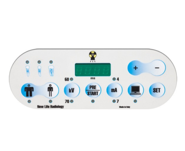 Рентген-аппарат Evolution оснащен многофункциональным блоком управления. В комплекте с ним идет дистанционный пульт управления. С помощью моноблока вы можете выставлять необходимые вам параметры, в том числе управлять экспозицией и настраивать ее в КВ (60/70) и мА(4/7). С помощью пульта вы можете управлять таймером.