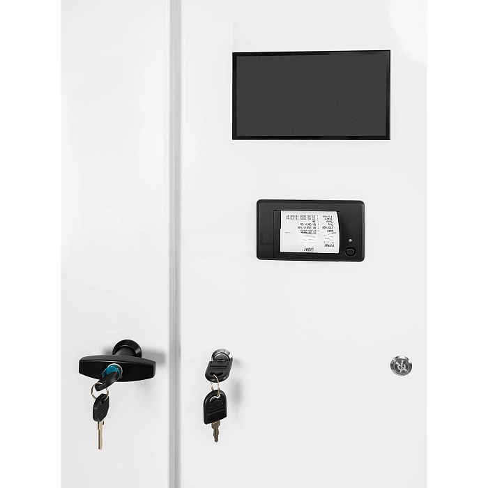 Оснащен встроенным термопринтером, расположенным на двери технического отсека. Распечатайте отчет одним нажатием кнопки “Отчет по каналам” в меню системы.