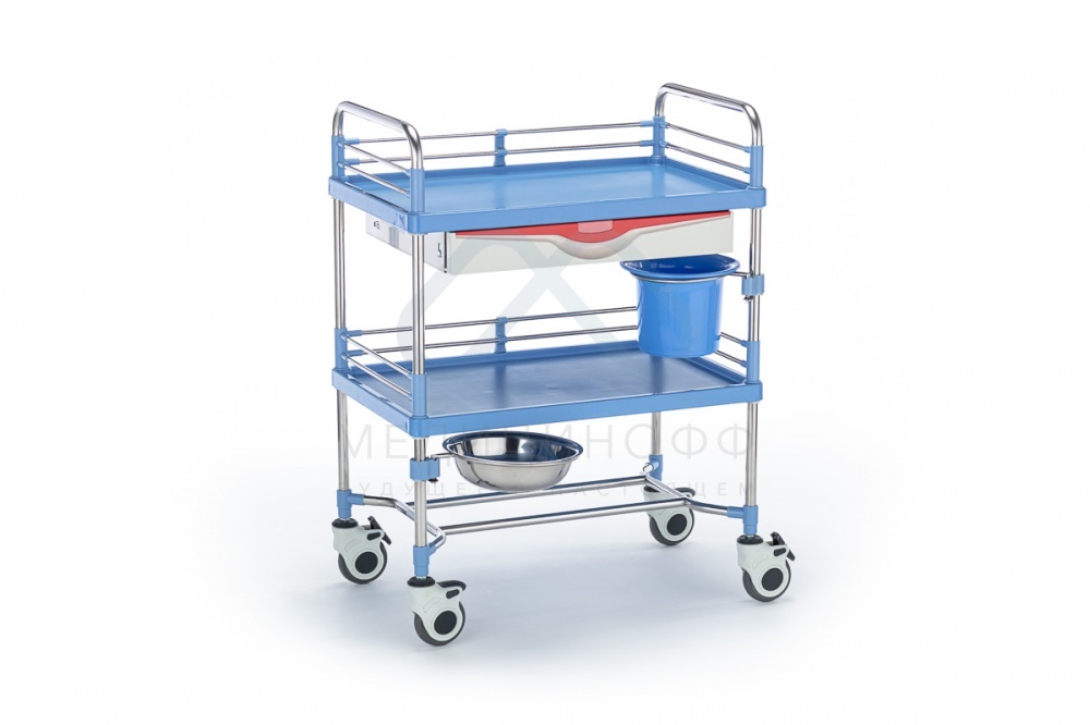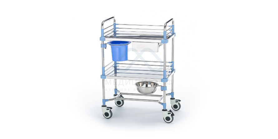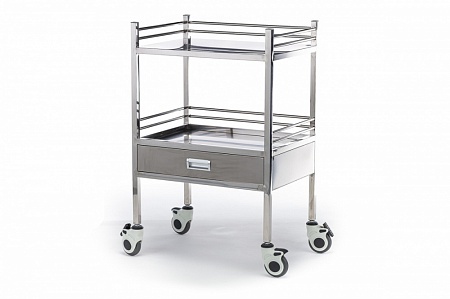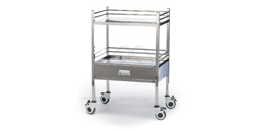Быстрая и удобная перевозка медицинских инструментов и принадлежностей чрезвычайно важна для отделений хирургии, интенсивной терапии, а также в больничных палатах и кабинетах лечебно-профилактических учреждений. Данная модель разработана для того чтобы максимально упростить работу персонала и улучшить качество обслуживания пациентов. Комплектующие из нержавеющей стали обеспечивают изделию необычайную прочность и стойкость к внешним воздействиям, презентабельный внешний вид и простоту в дезинфекции.