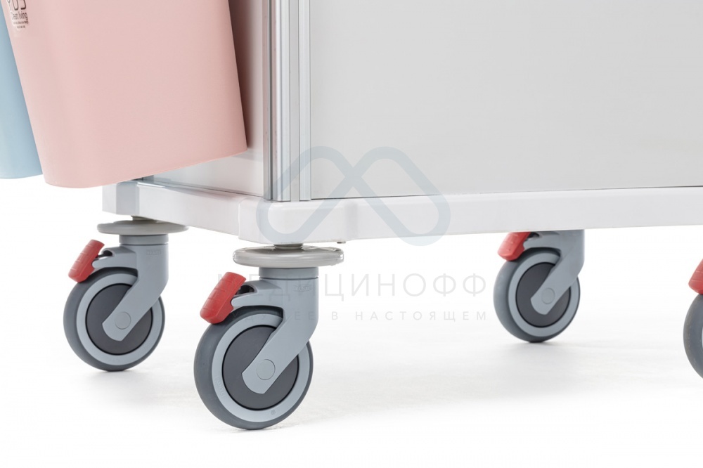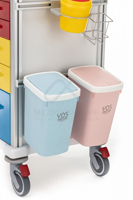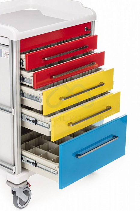 Тележка анестезиолога «Медицинофф» F-19(s)Тележка анестезиолога Медицинофф F-19(s) одна из самых компактных моделей тележек. Фасады ящиков тележки из стали, окрашенной полимерно-порошковым покрытием в яркие цвета, сохраняют безупречный внешний вид в течении всего срока эксплуатации. Универсальность использования тележки обеспечивают ящики разной вместительности. Каждый ящик оборудован устройством, предотвращающим его выпадение. Самоориентирующиеся колеса обеспечивают легкость и маневренность тележки.