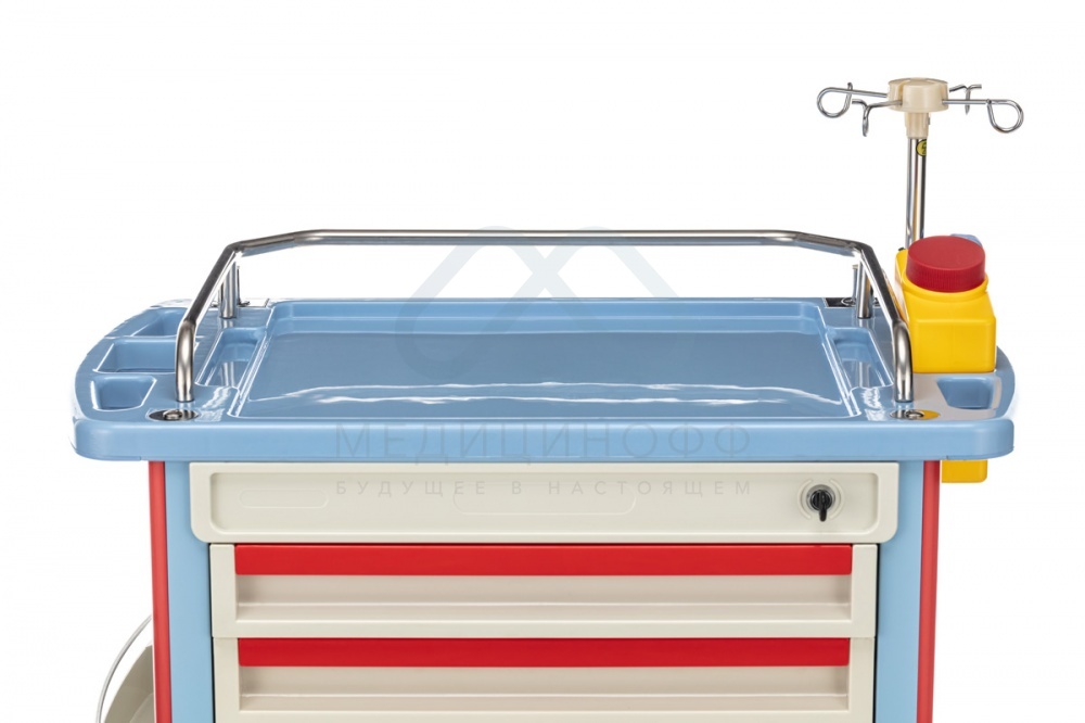 Тележка «Медицинофф» F-19(a) обладает широким набором функций, позволяющих быстро и эффективно оказать неотложную помощь пациенту. Вместительные выдвижные ящики и удобная рабочая поверхность, подставки крепежи для оборудования, корзины для мусора, прорезиненные колёса с индивидуальной тормозной системой, а также набор дополнительных приспособлений – всё это делает данную модель отличным вариантом для оснащения медицинских учреждений любого профиля. Высокопрочная и долговечная – благодаря использованию качественных материалов и надёжных комплектующих – тележка анестезиолога обеспечит вашему персоналу максимально комфортную работу.