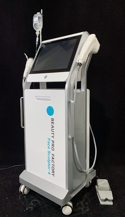 Аппарат Face Sculptor-4 (hifu 3 картр 1.5, 3.0 и 4.5 + микроигольчатый А2 + газожидкостный пилинг, напольный корпус) представляет собой аппарат, который совмещает 2 инновационные технологии: микроигольчатый RF-лифтинг и HIFU – высокоинтенсивный сфокусированный ультразвук для воздействия на глубинные ткани организма или по-другому SMAS-лифтинг.