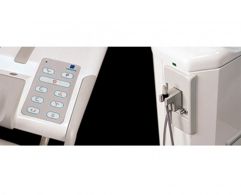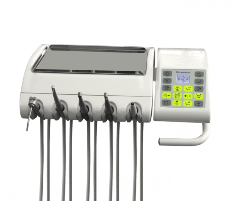 - Панель управления перемещениями кресла, функциями блока врача, светильником, наполнением стакана и плевательницей