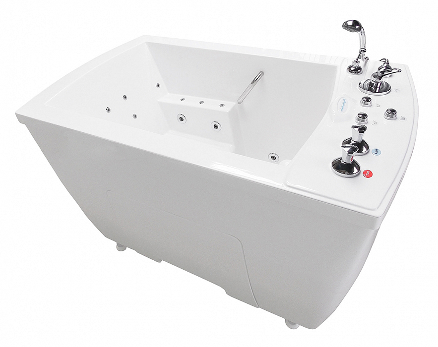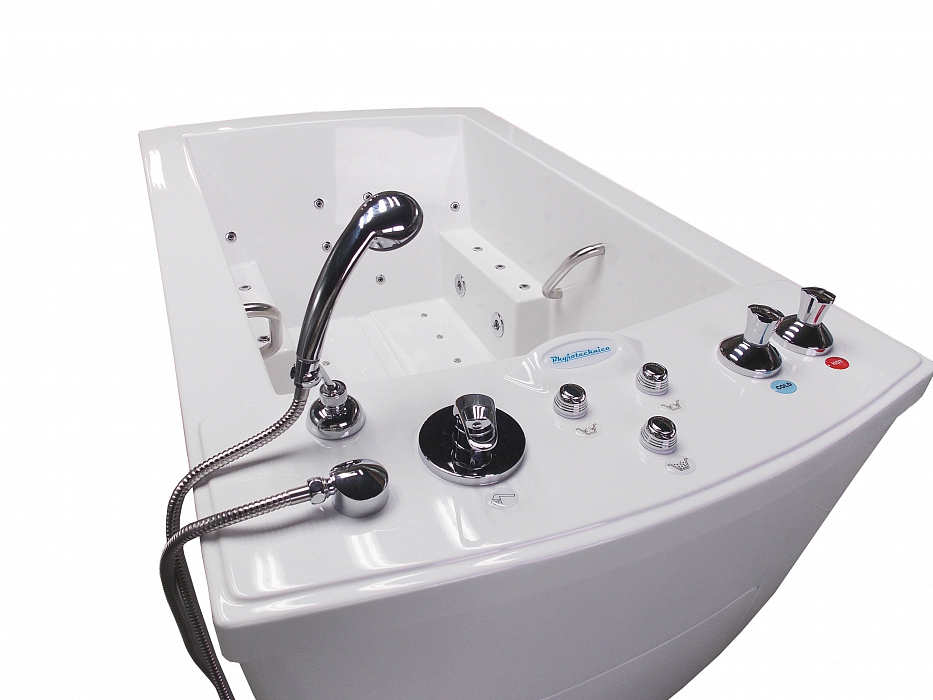 Ванна оснащена поручнями, изготовленными из нержавеющей стали, которые прикреплены к бортам. Они обеспечивают удобное размещение пациента при проведении гидротерапевтических процедур.
