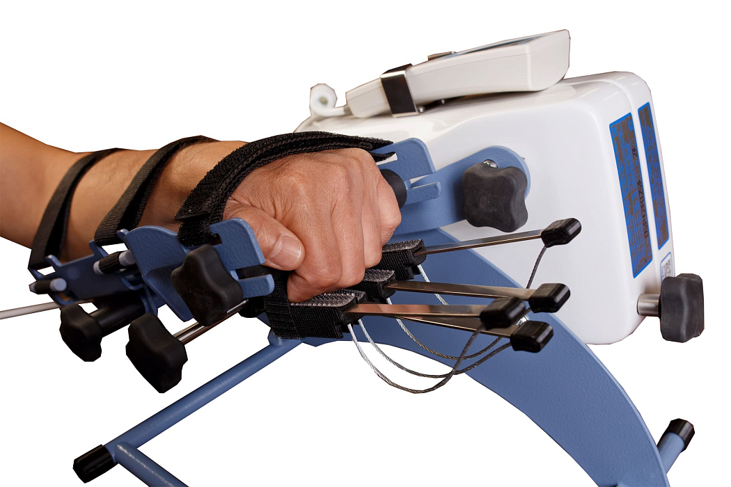 Аппарат для роботизированной механотерапии для кисти и пальцев рук. Наличие предустановленных программ тренировок. Сохранение в памяти настроек процедур для 250 пациентов. Подходит для правой и левой руки.