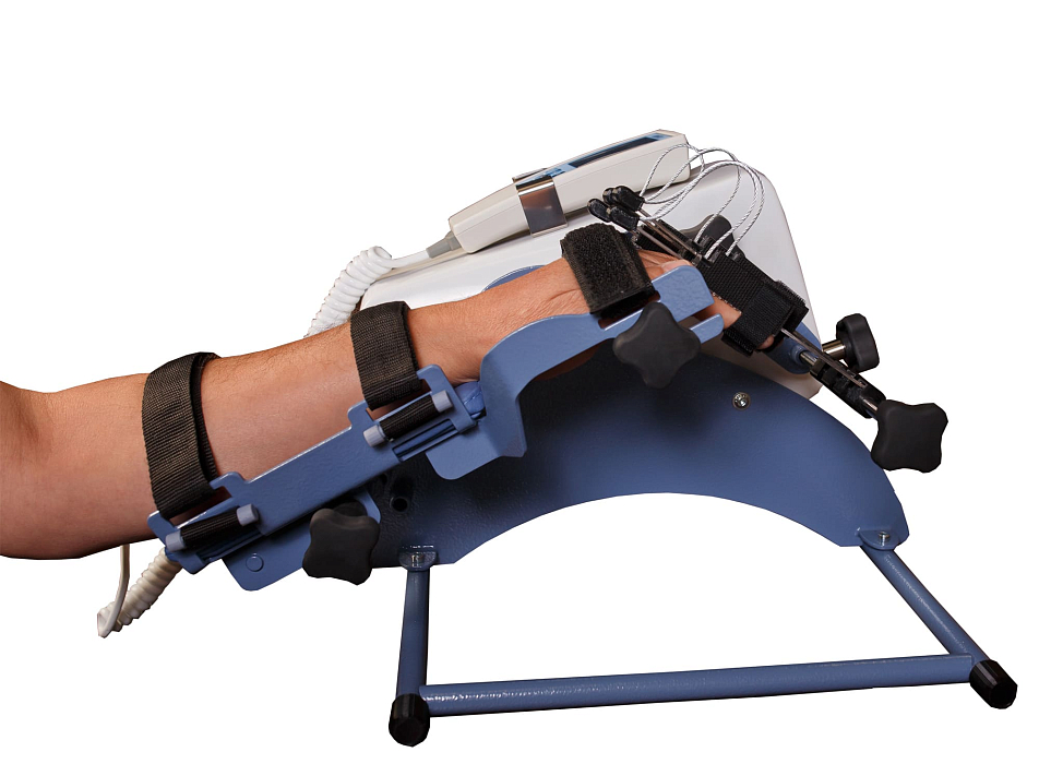 Специальные крепления позволяют зафиксировать как маленькую детскую руку, так и достаточно крупную у взрослого пациента. В процессе разработки крепления не вылетают и разработка проходит максимально эффективно.