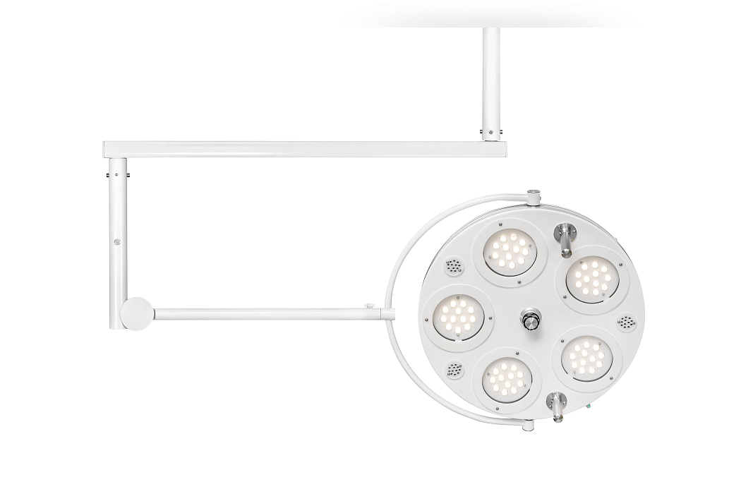 ФотонФлай 5м-а оборудован двумя куполами, за счет чего в процессе хирургических манипуляций возможно освещение операционной зоны одновременно в двойной проекции. Это существенным образом облегчает и ускоряет процесс. Купола регулируются посредством держателей с подвижным механизмом, что позволяет расположить их в любом положении, тем самым способствуя освещению наиболее труднодоступных областей. А изогнутая форма исключает образование теней при попадании светового потока на оперируемый участок.