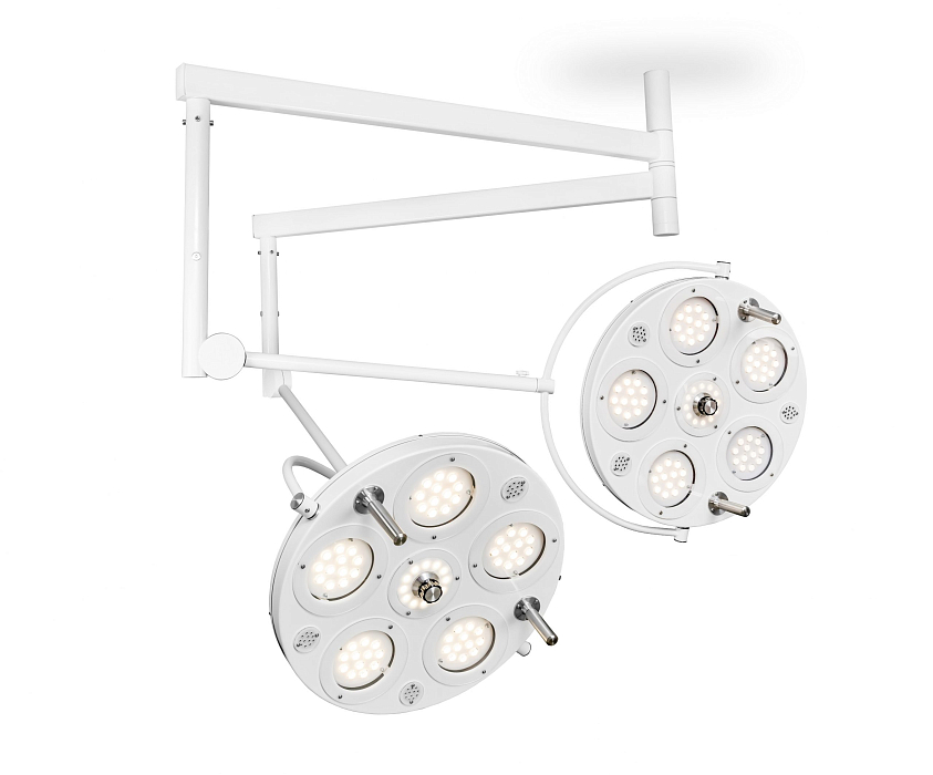 Потолочный медицинский двухкупольный светильник FotonFLY 6М/6М имеет по 6 модулей на каждом куполе и 144 светодиода с индексом цветопередачи 98%.