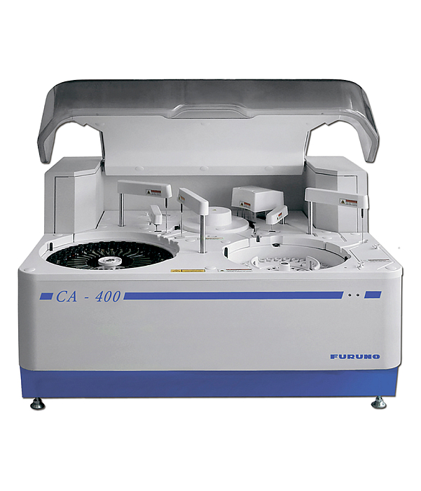 Аналитическая система, состоящая из автоматического биохимического анализатора производства компании Furuno Electric Co. Ltd и реагентов в системных штрих-кодированных флаконах производства ДиаС, Россия и DiaSys, Германия.