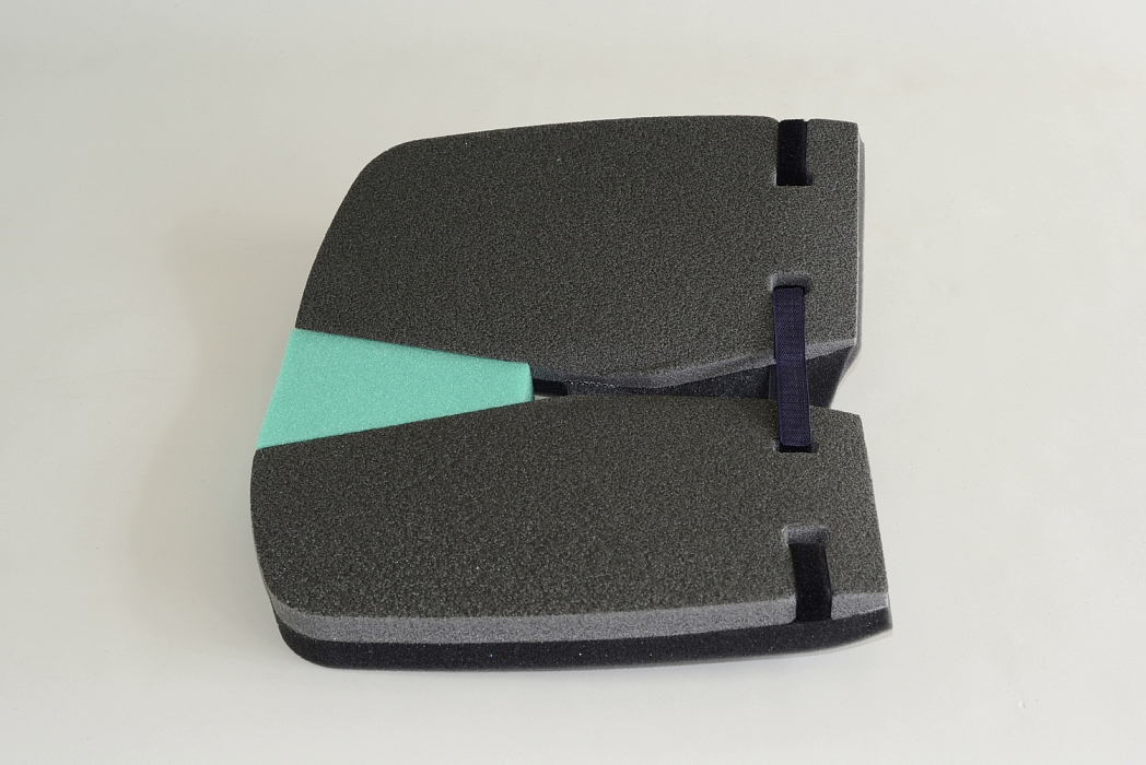 Конструкция накладки поддерживает ягодичные мышцы и верхнюю часть бедра, делает невозможным соприкосновение копчика и седалищных бугров с твердой опорой сидения, обеспечивая максимальную разгрузку крестца и копчика, она имеет простое, но эффективное устройство регулировки степени разгрузки. Дополнительный вкладыш позволяет создавать выравнивающий эффект на начальном этапе использования.