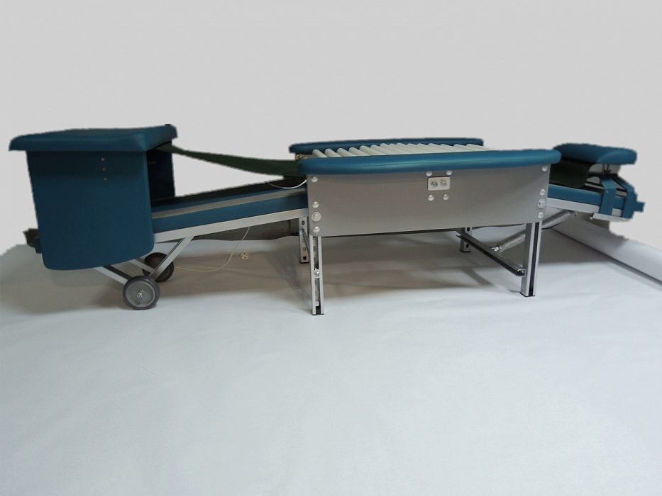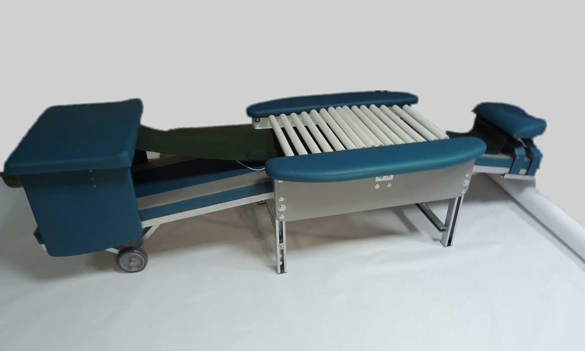 3. Возможность регулировки усилий вытяжения позвоночника со стороны головы с помощью вручную управляемого пневмоцилиндра и со стороны ног вручную механически.