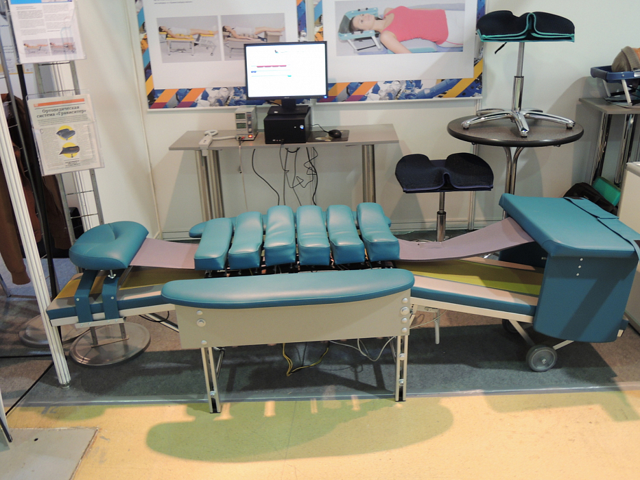 1. Устройство предназначено для профилактики и лечения позвоночника методом нетравматичного, аутогравитационного вытяжения с поддержкой оптимальной индивидуальной кривизны позвоночника, регулируемой микровибрации и теплового воздействия. Профессиональный вариант.2. Возможность расположения людей ростом до 2,2 метров без специальной предварительной подготовки устройства под ростовые характеристики. Опорная поверхность под спиной образована системой мягких профилированных элементов.
