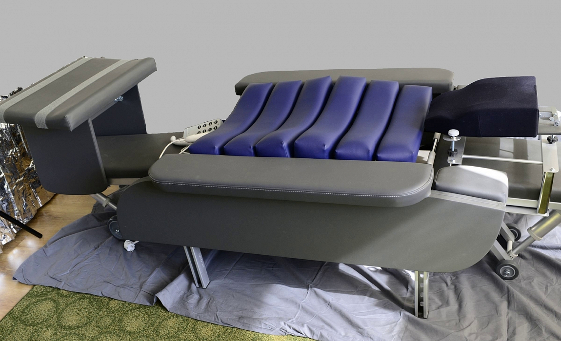 1. Устройство предназначено для профилактики и лечения позвоночника методом нетравматичного, аутогравитационного вытяжения с поддержкой оптимальной индивидуальной кривизны позвоночника, регулируемой микровибрации и теплового воздействия.2. Возможность расположения людей ростом до 2,2 метров без специальной предварительной подготовки устройства под ростовые характеристики.