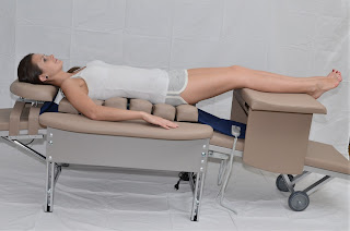 3. Возможность регулировки усилий вытяжения позвоночника со стороны головы с помощью управляемого пневмоцилиндра и со стороны ног с помощью пульта электропривода предварительно и в процессе процедуры.