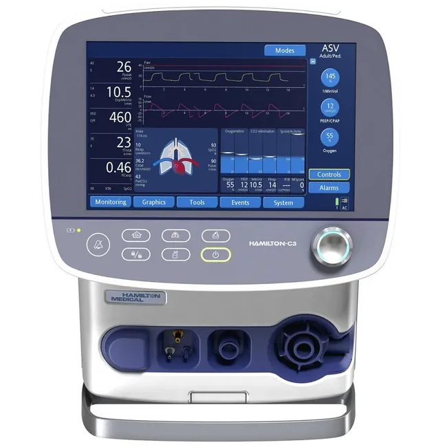 Аппарат ИВЛ Hamilton C3 — это медицинское оборудование, которое предназначено для принудительной подачи газовой смеси в лёгкие с целью насыщения крови кислородом и удаления из лёгких углекислого газа. Современная многофункциональная модульная система искусственной вентиляции легких с широким функционалом и исключительной надежностью, которая подходит для всех групп пациентов. В приборе реализованы различные инновационные технологии, в том числе автоматическое управление вентиляцией INTELLiVENT-ASV, а благодаря небольшим размерам и независимости от источников сжатого воздуха аппарат с легкостью можно перемещать в пределах больницы.