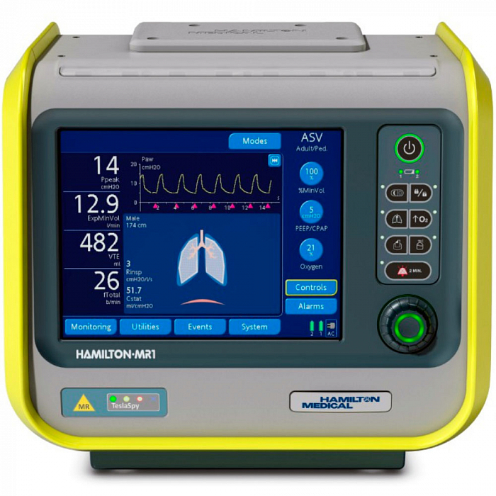 Hamilton MR1 — это медицинское оборудование, которое предназначено для принудительной подачи газовой смеси в лёгкие с целью насыщения крови кислородом и удаления из лёгких углекислого газа. Полнофункциональный реанимационный аппарат ИВЛ обеспечивает непрерывную вентиляцию в отделениях интенсивной терапии, а также при транспортировке пациентов (например: в кабинет МРТ и обратно). Надежный и высокоэффективный прибор, в котором реализованы усовершенствованные стратегии защиты легких и адаптивные режимы вентиляции, идеально подходит для использования в реанимационных отделениях.