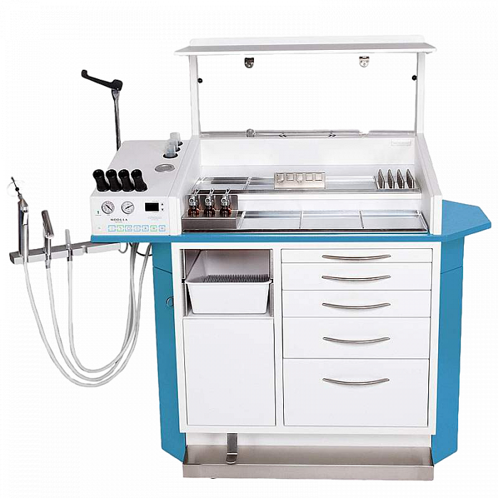 MODULA-EUROPA имеет оптимальный размер, который позволяет не только эргономично разместить все компоненты, но и предоставляет широкий выбор возможностей размещения инструментов, медикаментов и оборудования. В качестве отсеков для хранения доступны широко открывающиеся ящики, а также лотки для размещения инструментов из нержавеющей стали, расположенные на 1 – 3 уровнях. Электронная стеклянная панель управления позволяет постоянно контролировать важнейшие параметры во время приема пациентов: температуру воды для промывания, уровень давления воздуха для распыления медикаментов и вакуума для аспирации. Как и все ЛОР-установки серии MODULA, MODULA-EUROPA отличается долговечностью и надежностью конструкции, а также максимальным удобством в эксплуатации.