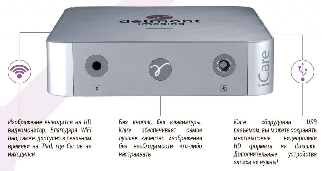 Плавные линии, качественные материалы делают iCare красивым и элегантным продуктом. Головка камеры приятно ложится в руку, обеспечивая надежное сцепление и естественный доступ к кнопкам управления.