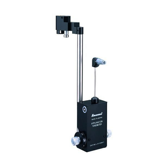 Аппланационный тонометр для измерения внутриглазного давления Inami L-5110 идет в комплекте с призмой, калибровочной линейкой и креплением для надежной фиксации на микроскопе щелевой лампы этой фирмы. Диагностика проводится в диапазоне от 0 до 80 мм рт.ст. с шагом 2 мм рт.ст. Система обладает весом менее одного килограмма, так что у вас не возникнет проблем с ее транспортировкой в пределах клиники.