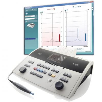 Комбинированный аудиометр-импедансометр АА 222 совмещает функции аудиометра и импедансометра. Прибор позволяет проводить аудиометрию по воздушному и костному звукопроведению, аудиометрию в свободном звуковом поле (опция), речевую аудиометрию, тесты SISI (ИМПИ), Stenger, ABLB, ручной и автоматический режим съема аудиограммы; импедансометрию – ручную и автоматическую; пороги ипси- и контралатеральных рефлексов (250–8000 Гц); ипси- и контралатеральный распад рефлекса; тест функции Евстахиевой трубы, разъем для подключения ПК, встроенный термопринтер. Возможна распечатка аудиограмм через принтер ПК или встроенный термопринтер.