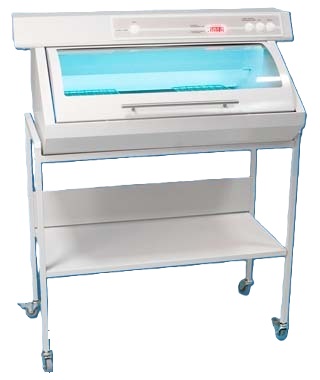 - металлического корпуса, с шарнирно поднимающейся и опускающейся металлической крышкой с установленным свето-теплозащитным стеклом, полностью задерживающим УФ-излучение;