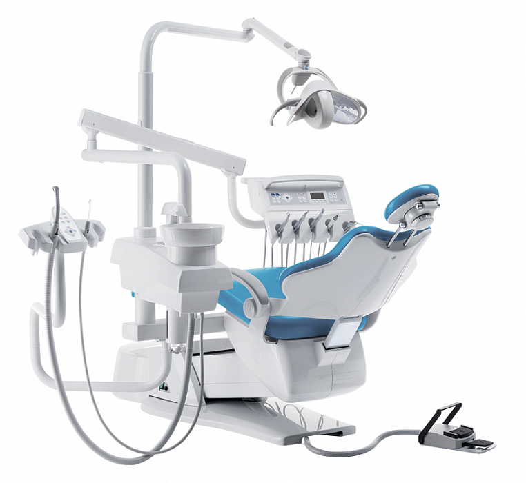 Установка с 5 инструментами верхней или нижней подачи, элементом врача, элементом ассистента, гидроблоком, многофункциональной педалью управления креслом пациента, светильником с двухступенчатой регулировкой освещения, в различных цветовых гаммах.